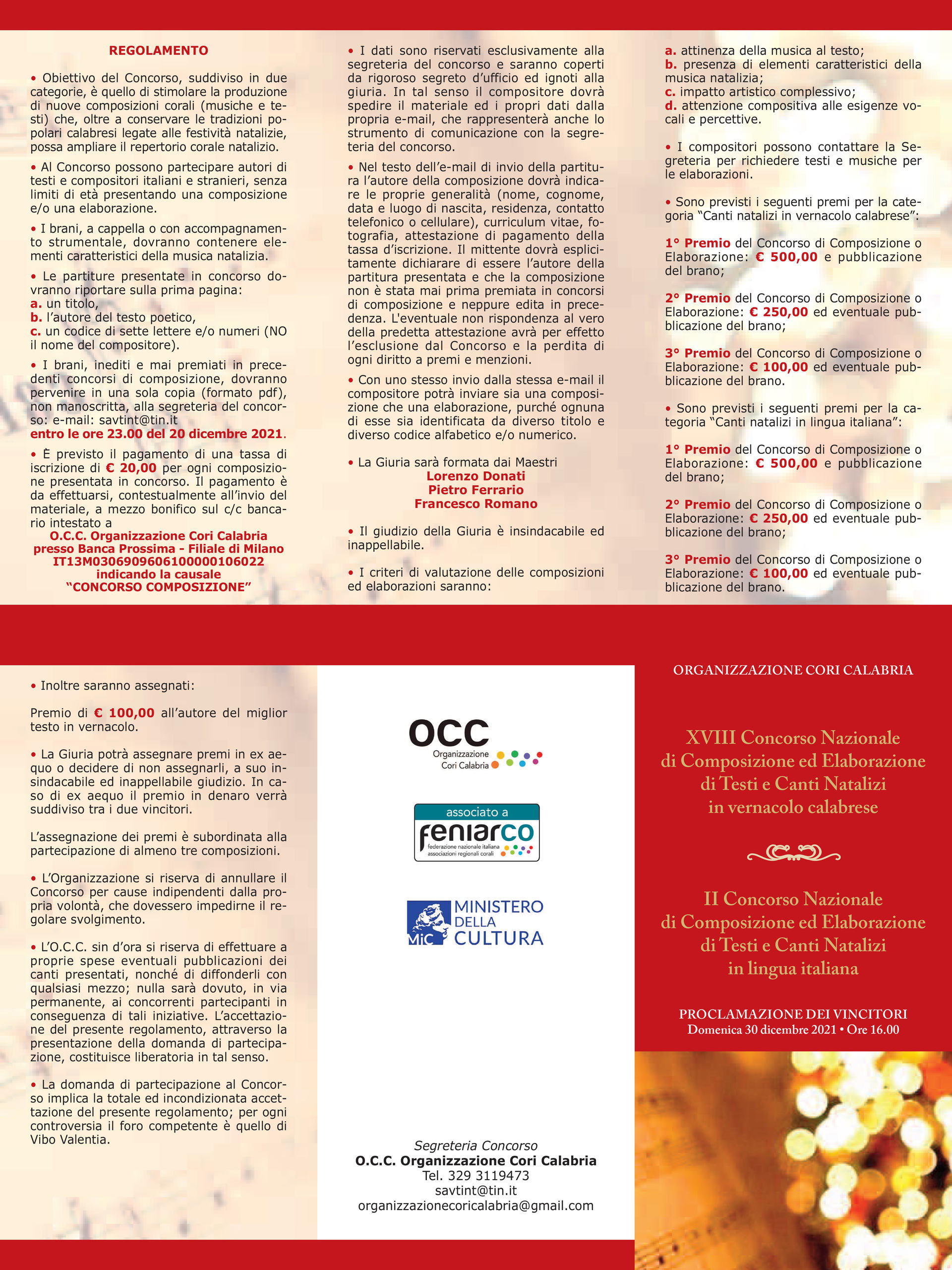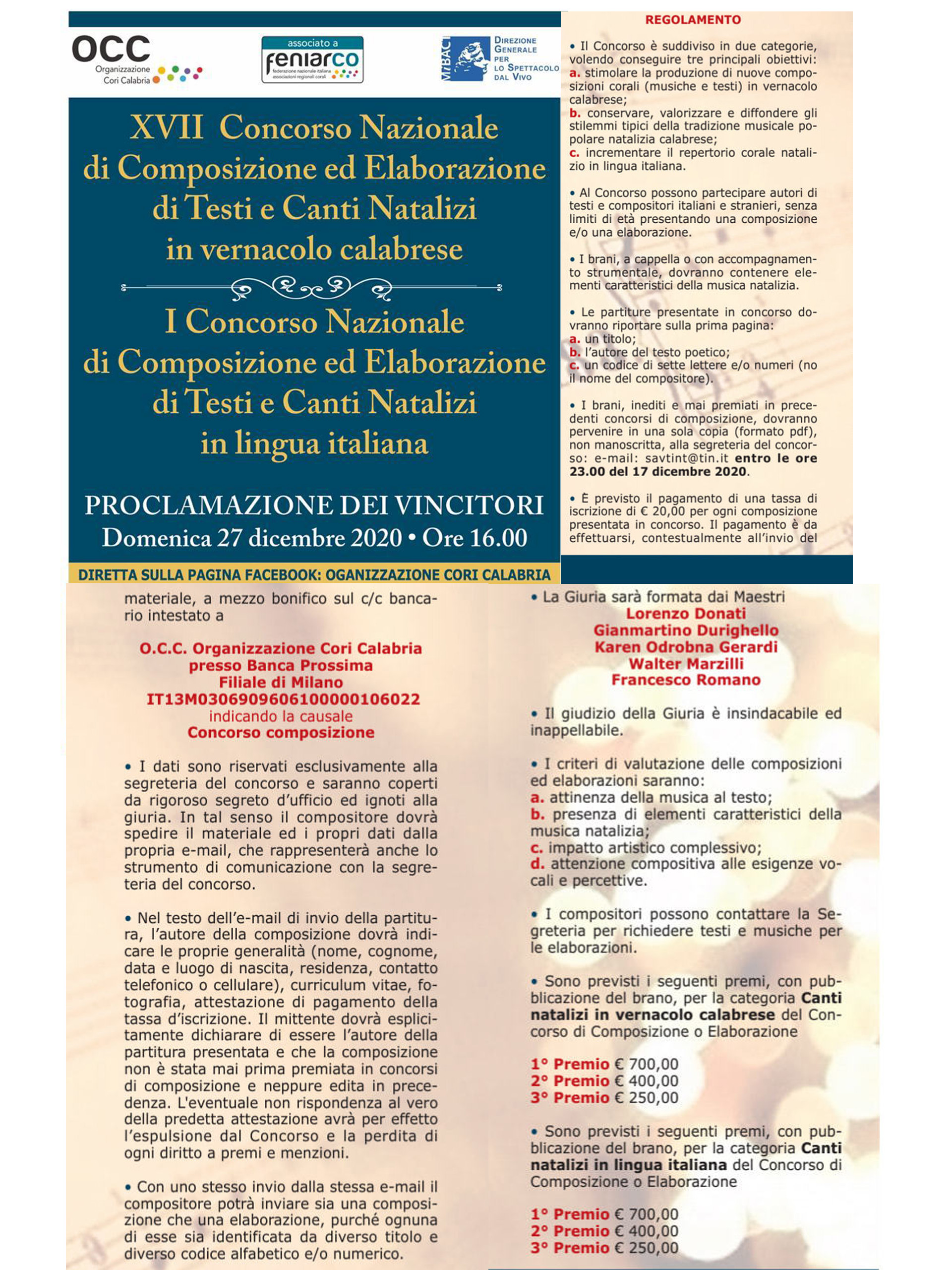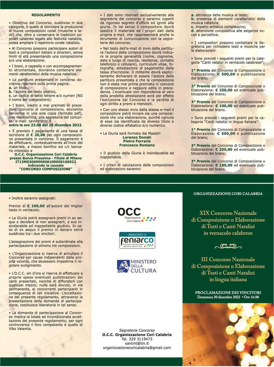 Obiettivo dei Concorsi è quello di stimolare la produzione di nuove composizioni corali (musiche e testi) che, oltre a conservare le tradizioni popolari calabresi legate alle festività natalizie, possa ampliare il repertorio corale natalizio.